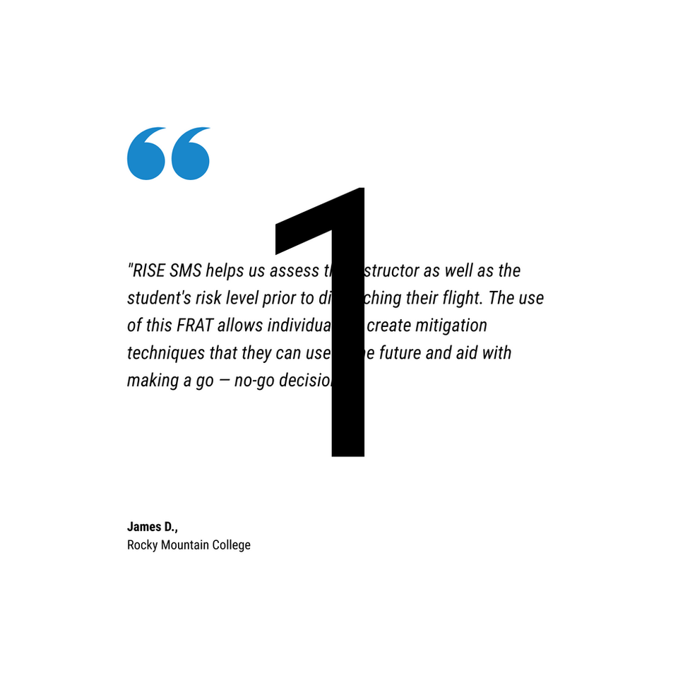 "RISE SMS helps us assess the instructor as well as the student's risk level prior to dispatching their flight. The use of this FRAT allows individuals to create mitigation techniques that they can use in the future and aid with making a go—no-go decision."